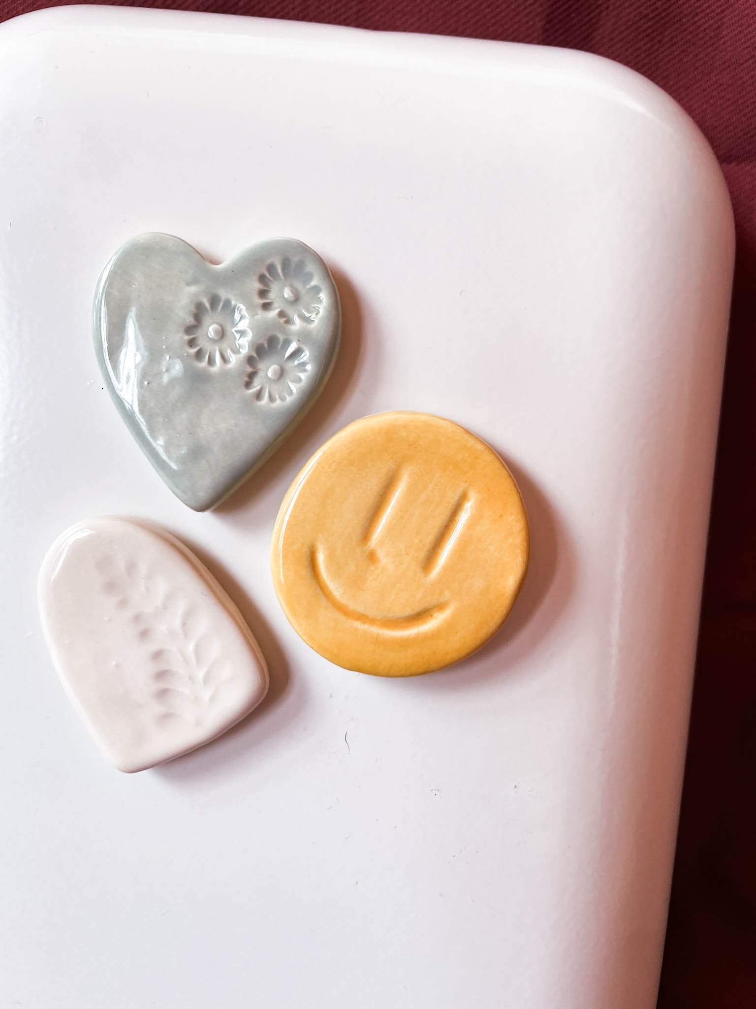 Transforme ton frigo en galerie de couleurs avec ce trio d'aimants doux et joyeux. Chaque pièce apporte sa propre palette de teintes pour égayer ton espace et te rappeler que les petites choses comptent. Une façon simple et délicieuse d'ajouter un peu de magie à tes moments du quotidien.