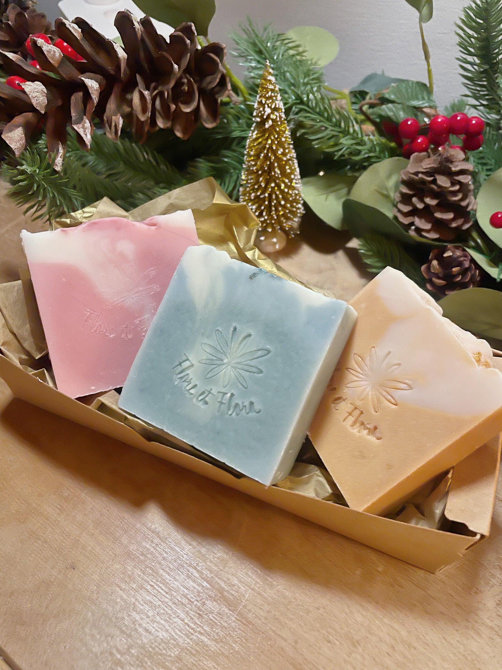 Ta peau te remerciera ! Avec ce Trio de savon tu pourra avoir un savon dans la douche, un pour le bain et même un a l'évier de ta cuisine pour tes p’tite mains !